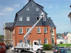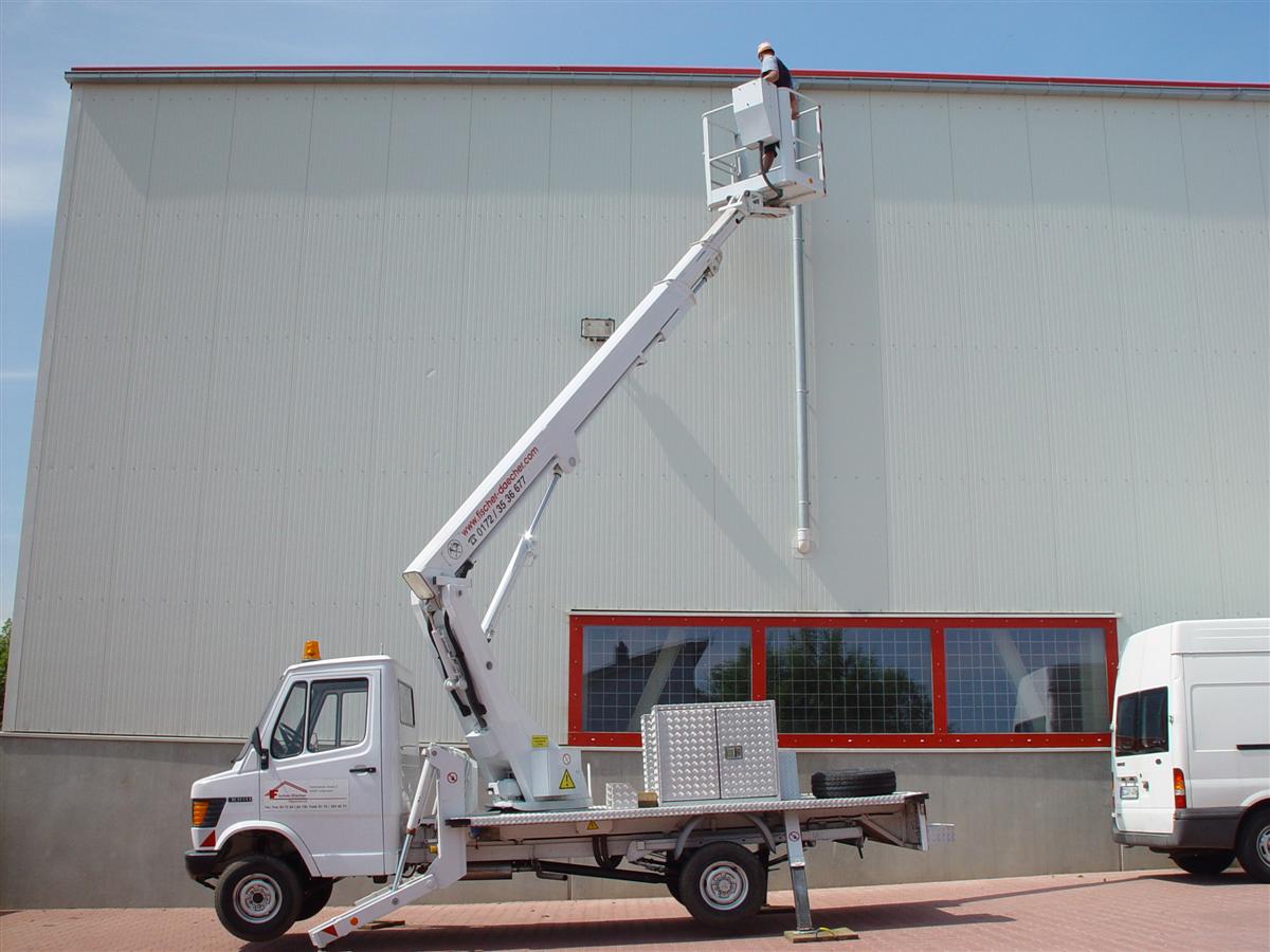 Neu in unserem Fuhrpark, wenns mal schnell und ohne Gerüst gehen soll. Hydraulische Arbeitshubbühne bis 17m Hubhöhe Preise auf Anfrage Telefon/Fax 03 72 04 / 83 732 Mobil 01 72 / 353 66 77 E-Mail info@fischer-daecher.de![]()